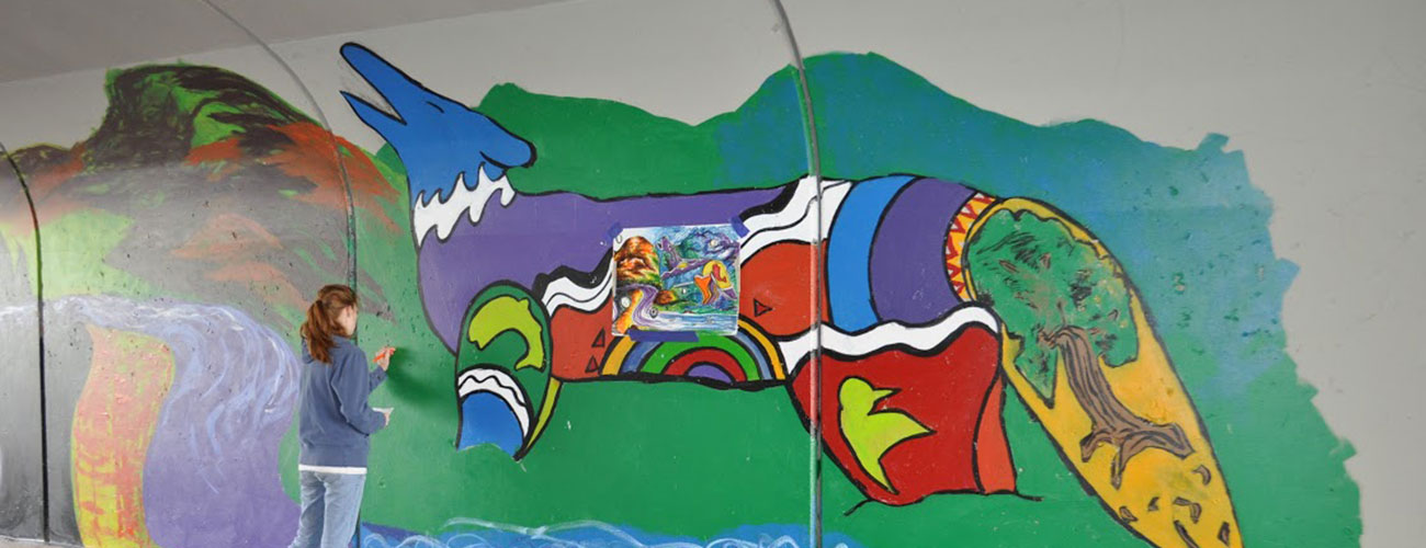 Enter the Chamber of Commerce’s Leadership Redmond 2013 group. Their solution was to enlist faculty and students from the Redmond Proficiency Academy to create the art. RPF signed on as the fiscal sponsor, local businesses made generous donations, and two things happened. First, the colorful mural was painted which remains in the tunnel to this day providing aesthetic relief for a dreary passage. Second, graffiti went away.